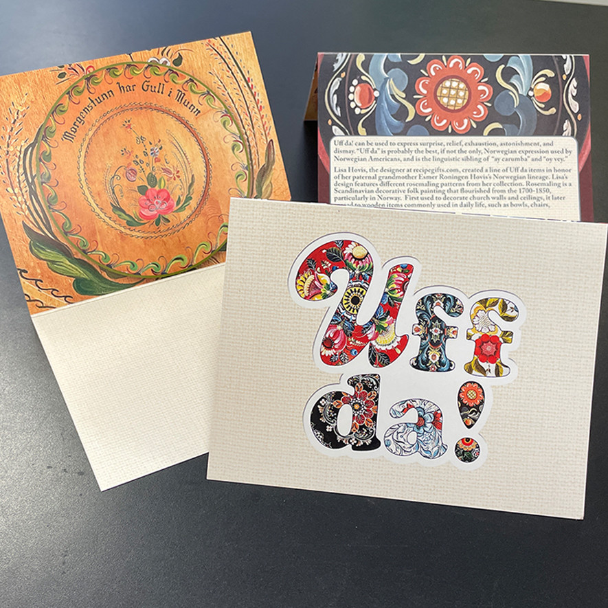 Make someone's day and send them one of these Uff Da! notecards. This is a 5x7 set of 6 cards, envelopes included.