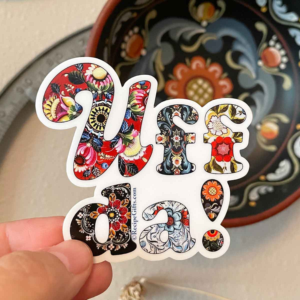 Uff Da! A well-known Norwegian phrase is featured on the front of this adorable adhesive sticker! This sticker is about 2.5" by 2.5", with one side being the removable backing of the sticker, and the other side being this unique design. The sticker has a matte finish. This sticker is the perfect addition to your sticker collection for laptops, water bottles, phone and tablet cases and more!